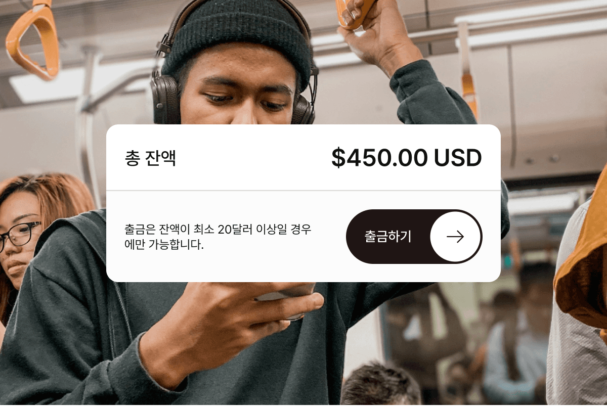 정산은 백팩 플랫폼에서 처리됩니다. 전달드린 기간에 백팩 계정으로 원고료가 지급되며, 출금 버튼을 눌러 출금 신청을 해주세요. 지급 기준은 USD이며, 지원하는 송금 방식은 PayPal(보통 1일 내 수령)과 은행 송금(보통 5–7일 소요)입니다.